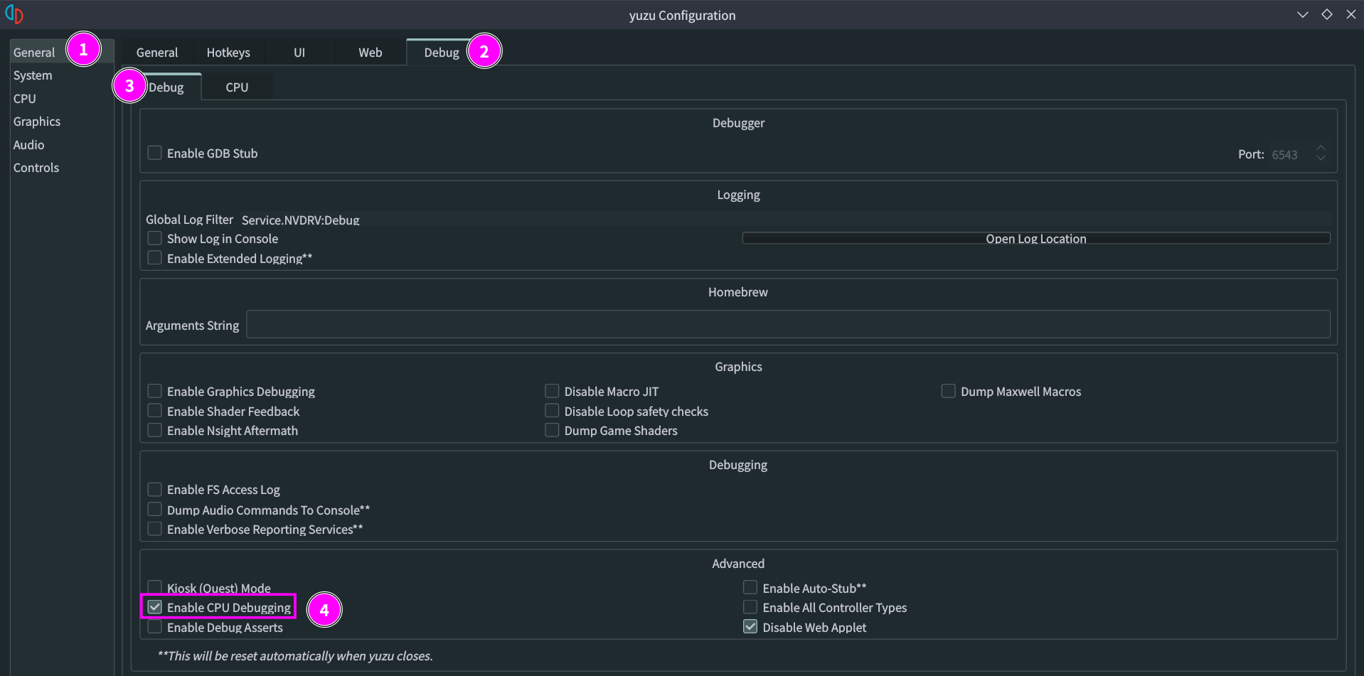 cmake .. -GNinja -DCMAKE_BUILD_TYPE=Debug -DYUZU_USE_BUNDLED_VCPKG=ON -DYUZU_TESTS=OFFninja